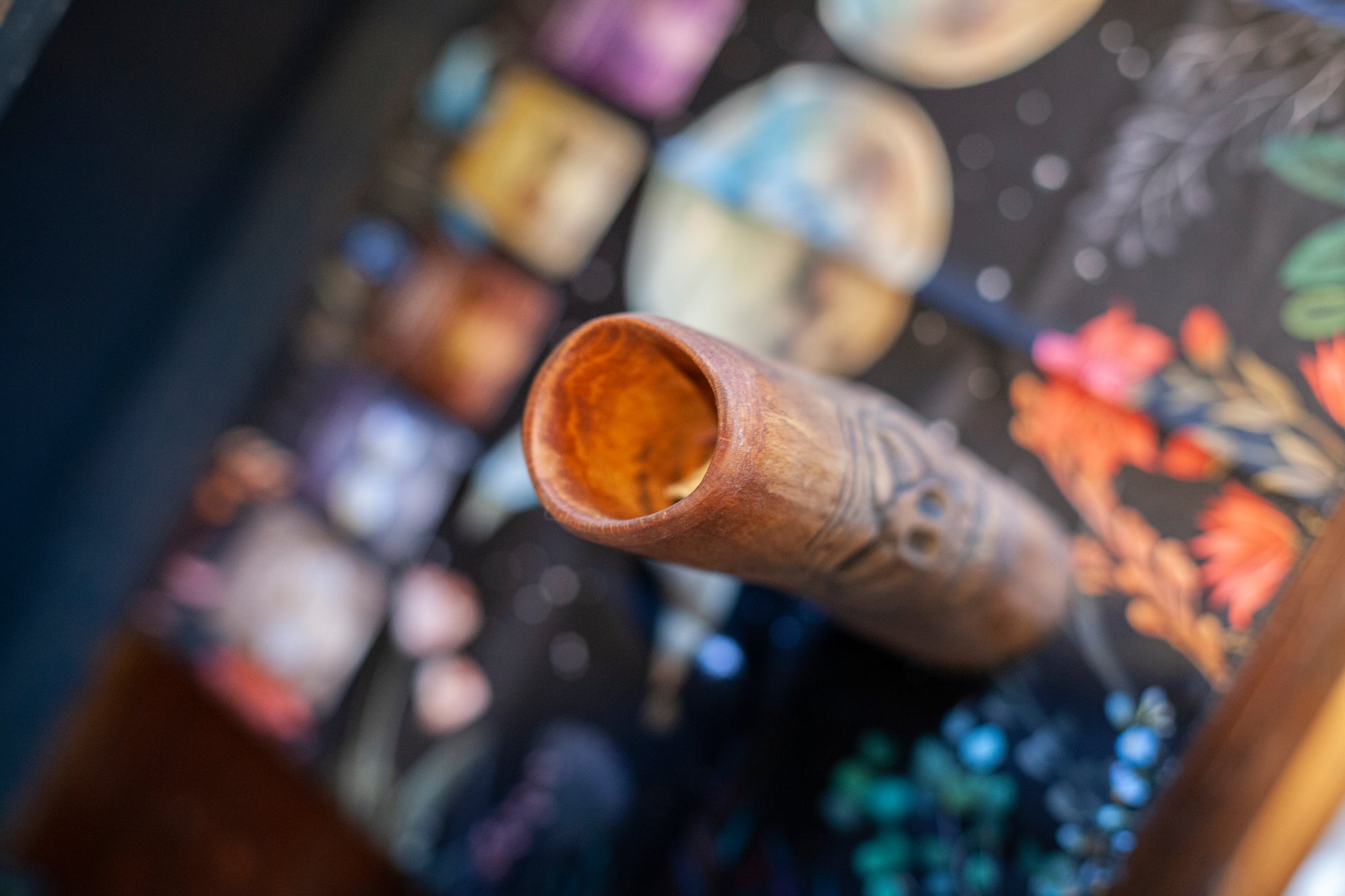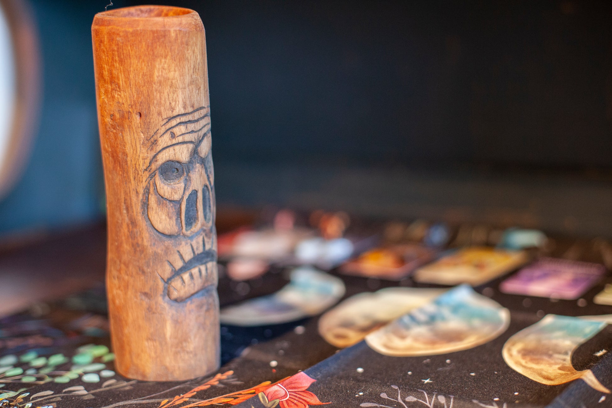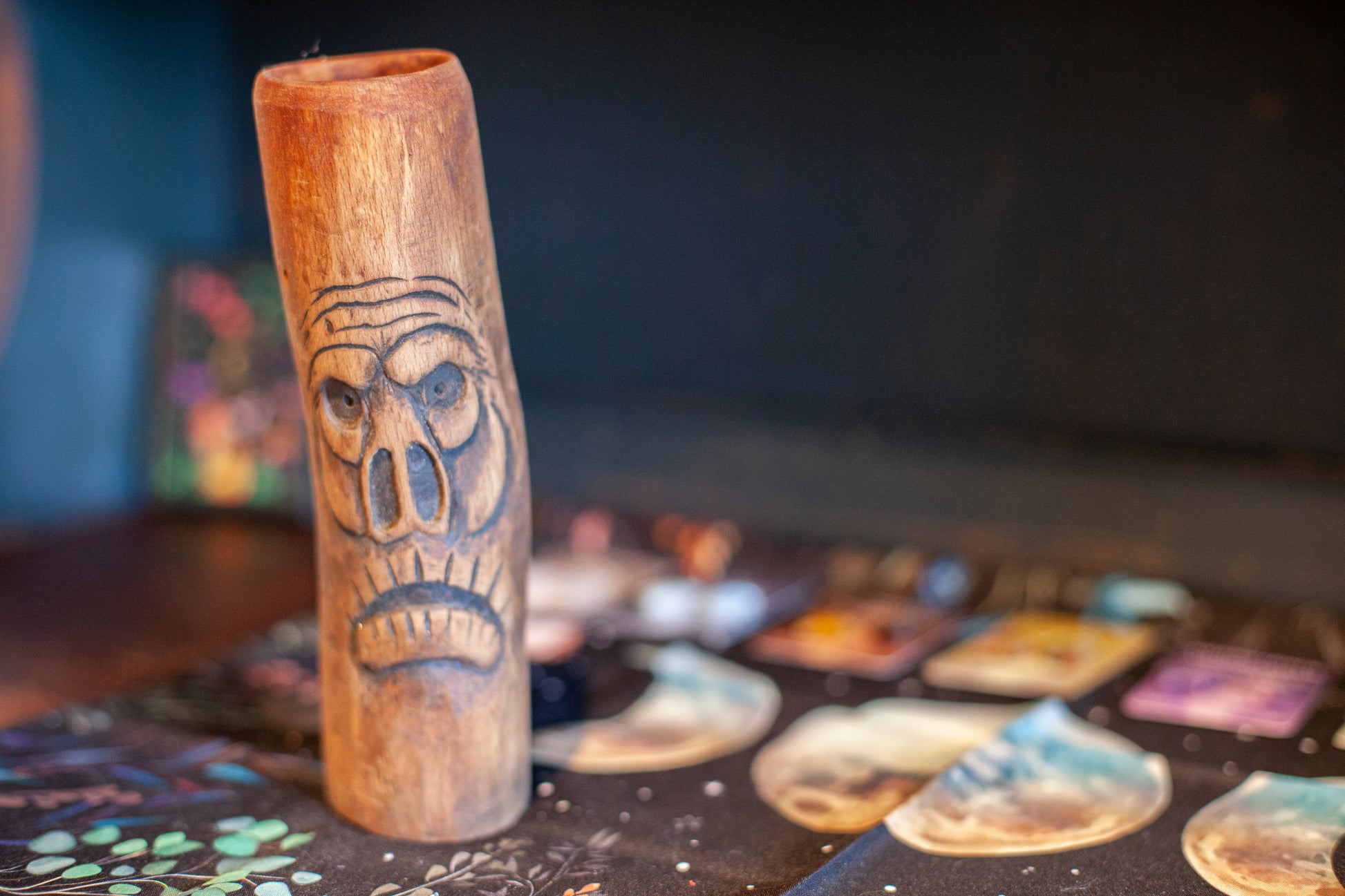 Handsnidad Träskulptur med fantasymotiv. Används som dekoration och inredning.